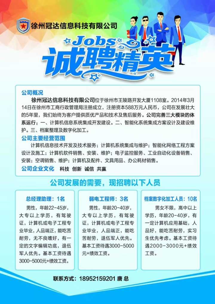徐州冠达信息科技有限公司招聘信息