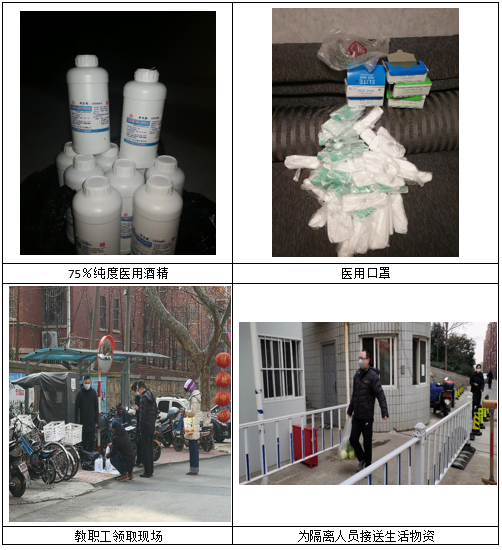 面对疫情,为提高科学防护手段,公司党总支不等、不靠,积极行动,想群众之所想,急群众之所急,多方筹措防控物资。截止2月4日,公司共筹措到防控物资共计: 75%纯度医用酒精20升,医用口罩300个。为了尽量减少教职工因领取防控物资而产生的风险,公司安排专人制定领取间隔时间,将防控物资第一时间送到教职工手中,解决了燃眉之急;针对外地归来处于隔离期的教职工,公司疫情防控工作领导小组安排专人负责将其所购物资送到其家门口。疫情防控工作领导小组务实、高效的作风和行动,得到了公司教职工的高度肯定。(吴兆立)