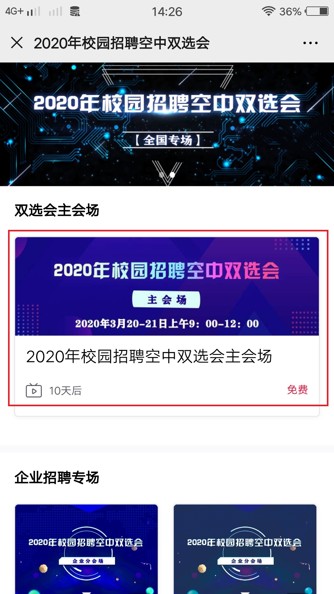 1)、点击“招聘会”按钮,进入招聘会列表页,就可以选择需要的内容进行观看啦!