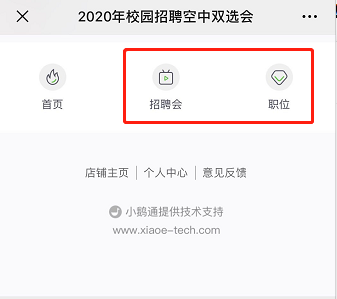 2、扫码进入首页,首页包含双选会主会场,企业招聘专场、底部导航(首页、招聘会、职位)三大模块,根据你的需求点击进入就可以啦!