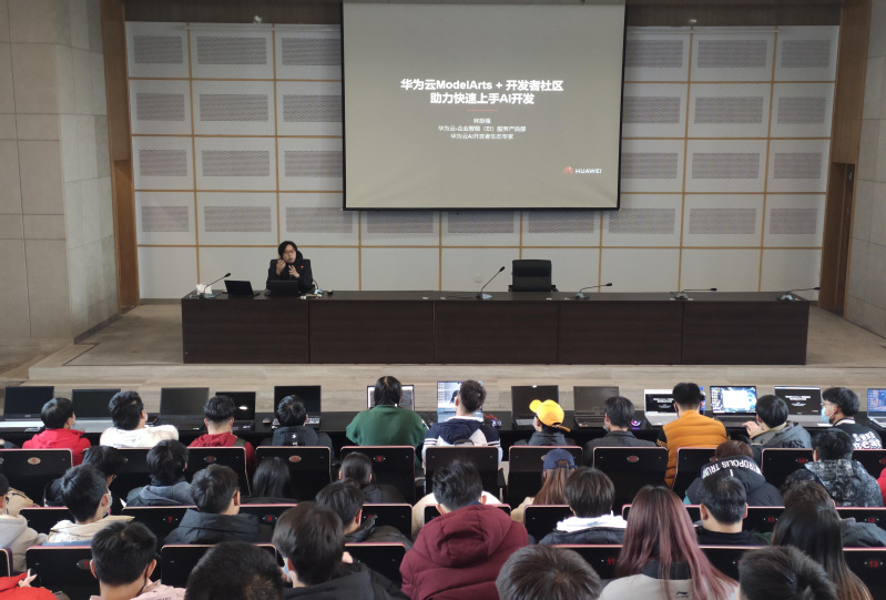 12月22日,公司邀请了华为云AI技术专家林旅强、许银在图书馆报告厅进行了题为《华为云ModelArts及开发者社区,助力快速上手AI开发》、《基于华为云ModelArts实现图像分类实践》的专业讲座,部分教师及计算机网络、软件专业员工听取了讲座。