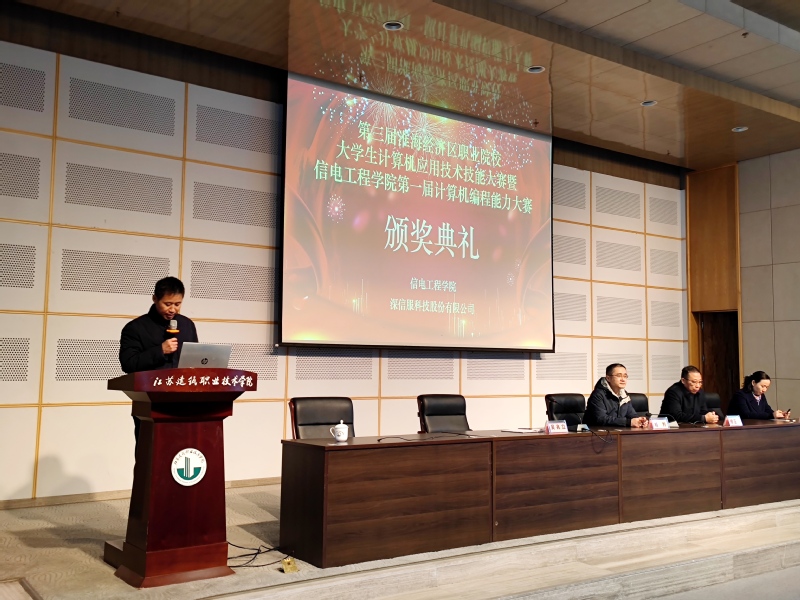 12月14日,公司在图书馆报告厅举办了大赛的颁奖仪式,颁奖仪式中教务处戚豹处长对大赛做了点评:此次比赛是一个良好的开端,是深入落实职业教育人才培养改革的体现。
