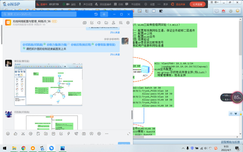 网络设备安装与配置课上,李黎老师耐心的为员工们讲解IEEE802.11知识体系,并通过项目案例仿真进行验证。