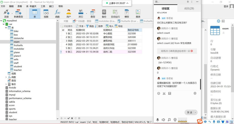 数据库课上,李若瑜老师结合当前抗疫环境,利用核酸检测项目作为思政案例诠释了数据库技术的“增、删、改、查”。