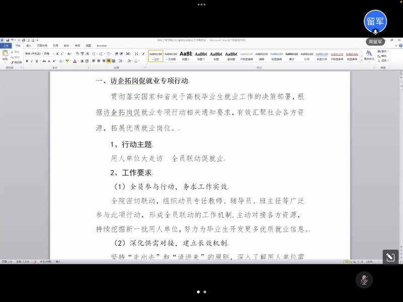 周留军书记传达了公司2022届毕业生就业推进会会议精神,结合公司就业状况,对下一阶段就业工作做出部署。一是访企拓岗,通过实地走访、线上联系等方式,深挖新一批的用人单位,为毕业生开拓工作岗位;二是对照公司毕业生工作任务清单,保质保量完成毕业生周就业率考核、毕业生就业质量调查等工作;三是积极引导毕业生尤其是转本员工树立正确就业观念,抓住时间节点及时签订就业协议四是做好毕业生心理辅导,防止员工就业压力大,从而产生焦虑或抑郁情绪,又要防止员工躺平心态,及时给员工打强心针”;五是各专业主任、班主任、实习指导老师工作要协调配合,合力做好毕业生就业工作