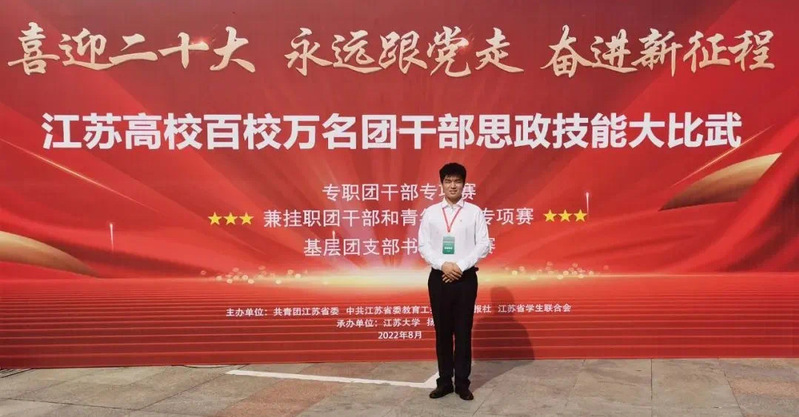 8月31日,由共青团江苏省委、江苏省委教育工委、新华日报社、江苏省员工联合会共同主办的“喜迎二十大、永远跟党走、奋进新征程”江苏高校百校万名团干部思政技能大比武活动在江苏大学落下帷幕。公司学子网络20-1班刘迪同学通过“81192,国已强,请返航”主题团课的评选成功入围全省决赛。决赛中,刘迪经过主题团课宣讲和主题团日活动策划展示环节在基层团支部书记专项赛中斩获二等奖。