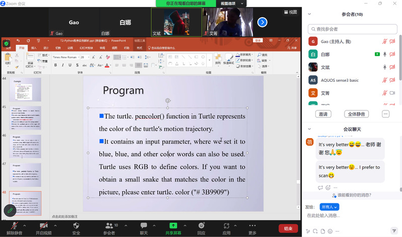 本学期公司开设了Linux操作系统和服务配置基础以及Python基础和应用两门课程,公司董爱民副教授以及白娜博士、高鹏老师为主讲教师,每门课程开展8周学习时间,48个学时,2.5个学分。课程采用理论实践一体化的授课方式,从LinuxPython的基础理论入手,为职工们讲解基础知识,在课堂上,老师带领职工们一起进行实际操作,从软件安装到程序编写,更直接高效的提高员工们的学习效率。课堂上,职工们通过当堂提问以及留言的方式积极参与课堂互动,老师们通过构建微信学习群等多种途径为职工解决学习难题,取得了良好的教学效果。后期,公司会根据学期课程安排为非洲计算机公司的同学们带来更多精彩的课堂。