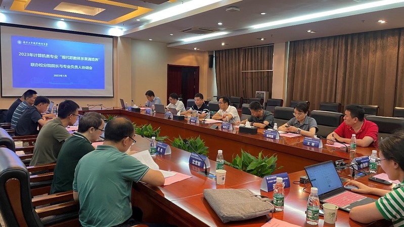 7月14日,公司吴兆立经理、王昕副经理、计算机网络技术专业主任李黎一行,赴南京工业职业技术大学参加了2023年计算机类专业“现代职教体系贯通培养”联办校分院经理与专业负责人协调会。