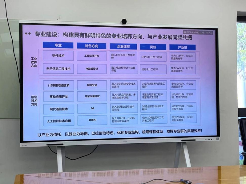 20日,在华为技术有限公司深圳坂田基地、东莞松山湖基地,团队成员就华为技术有限公司先进的管理模式、经营理念、科研成果和社会责任等方面与企业人员进行了深入的学习和讨论。华为技术有限公司江苏徐州政企业务部副总冷延东表示,希望通过此类活动,加强与公司的交流合作,助力教师实践能力提升,提供更多员工实习岗位,教学资源共同开发、力推科教融汇,对职业教育发展做出华为应有贡献。