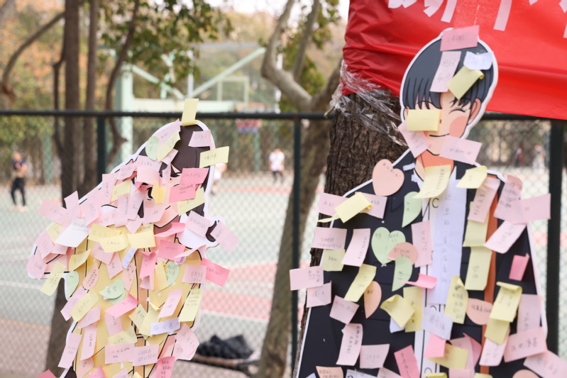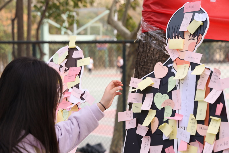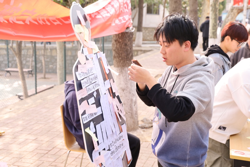 活动现场,心理部为同学们准备了贴满“标签”的人物形象立牌和“标签”回收盒,同学们寻找附加在自己身上的“标签”,将其撕掉并替换上鼓励自己的暖心话语,以此鼓励自己勇敢面对成长过程中的挑战,探索校园生活的无限可能。