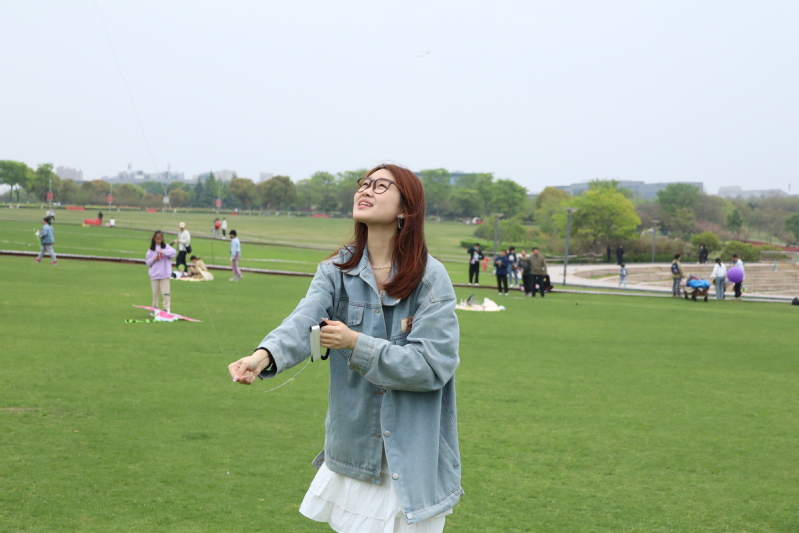 “放风筝还真不是一件有手就会的事”,通信22-1班的王瑞杰同学一边不断调整着手中的线,一边开心地说道。
