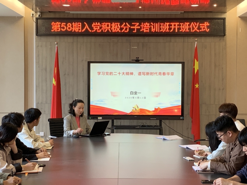 4月12日,员工党支部书记白金一作“学习党的二十大精神,谱写新时代青春华章”专题党课暨青马公开课,院员工党员、员工干部、第58期入党积极分子、青马工程学员参加学习。