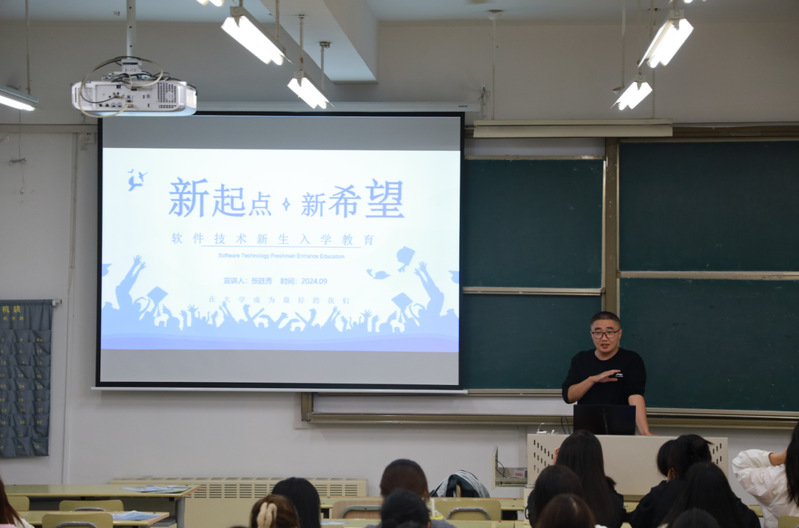 2024年9月23日19点,信电工程公司2024级新生专业介绍会在晚自习教室顺利召开。各专业主任走进教室,与新生亲切见面,并向同学们进行专业介绍。