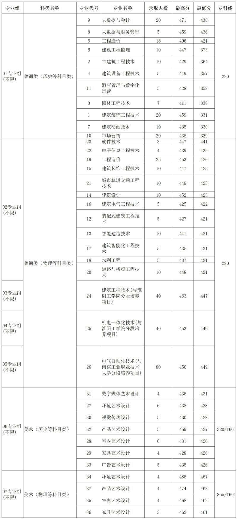 公司2023年江苏省高考各专业录取分数