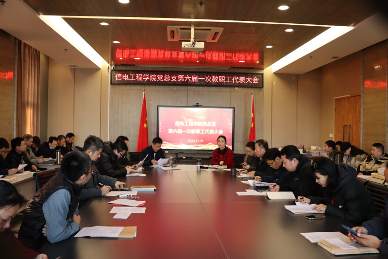 2024年12月31日,信电工程公司党总支第六届教职工代表大会第一次会议在图书馆404隆重召开。公司党总支领导班子及全体67名教职工参加了此次会议。大会由信电工程公司党总支书记虞莉主持。