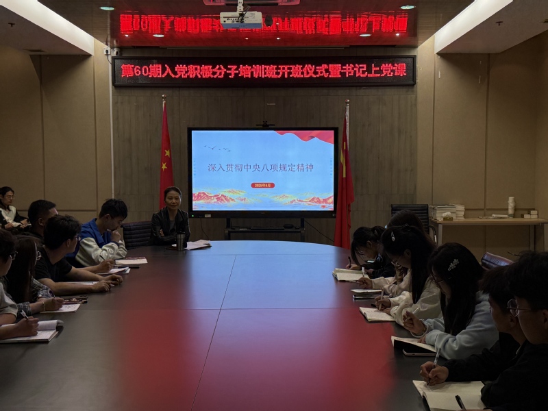 4月7日晚,公司员工党支部举行第60期入党积极分子培训班开班仪式。公司党总支书记虞莉、全体专职辅导员和49名学员参加此次开班仪式。