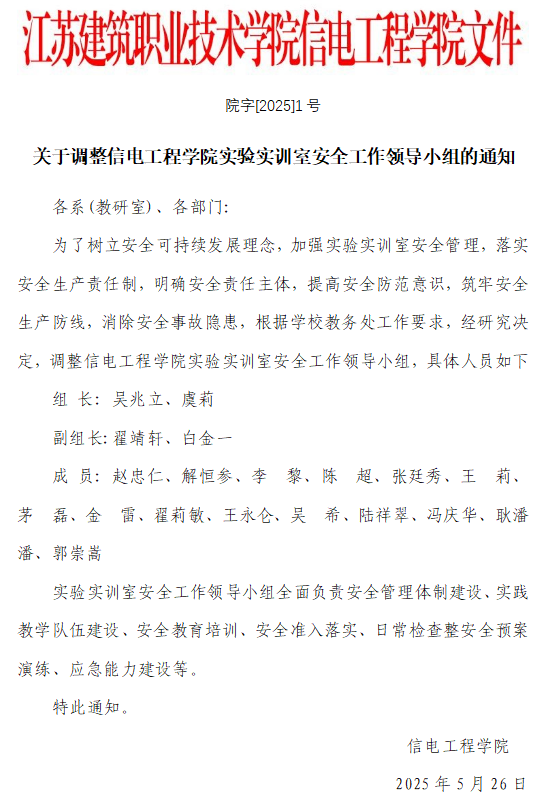 关于调整365英国上市公司实验实训室安全工作领导小组的通知