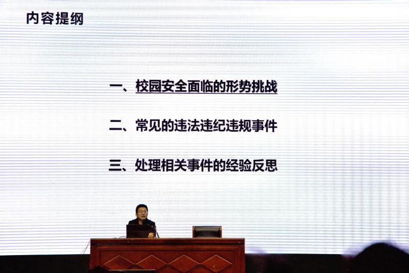 讲座中,赵斌科长围绕当前校园安全面临的形势与挑战,结合高校实际,分析了校园安全在内涵、时空及内外因素方面的复杂变化,指出安全与法治意识薄弱是导致校园危机事件频发的重要原因。在常见违法违纪案例分析环节,重点讲解了网络诽谤、网上兼职陷阱、宿舍矛盾及网络涉性行为等四类典型问题。通过真实案例,阐释了相关行为的法律界定与风险,包括诽谤罪的构成要件、“帮信罪”的常见形式、宿舍冲突中的法律责任,以及网络“隔空猥亵”、偷拍传播等行为的严重后果,提醒员工增强法律意识,规范自身行为。最后,讲座强调教育是预防校园安全问题的根本途径,纪律不是限制自由,而是保障每个人真正的自由。呼吁广老员工知法、守法、用法,共同营造安全、和谐、文明的校园环境。